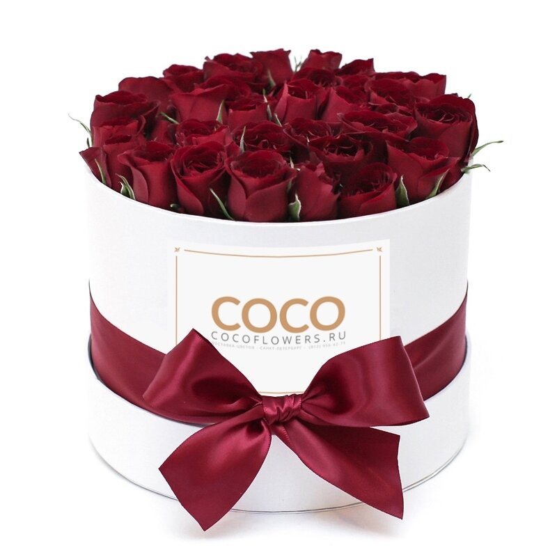 Шляпная коробка Deluxe с красными розами! Среднее количество в коробке: от 19 шт. до 29 шт. (в зависимости от величины бутонов)